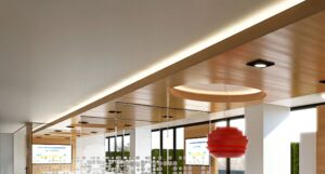 El cielo raso es una estructura liviana compuesta por paneles o placas, que permiten que el techo resulte más bajo, lo que facilita ocultar cables y vigas dando un mejor aspecto a sus instalaciones. Con un sistema de paneles da la opción de distribuir la iluminación de acuerdo a la disposición de los puestos de trabajo.